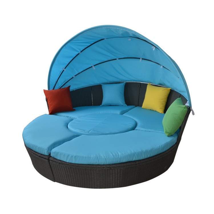 Круглая пляжная кровать-трансформер из искусственного ротанга. Каркас изделий изготовлен из высокопрочного алюминия, что гарантирует продолжительный срок службы. Комплектуется подушками со съемными чехлами для максимально удобного очистки от загрязнений. Ручное плетение делает неповторимым и уникальным каждое изделие.