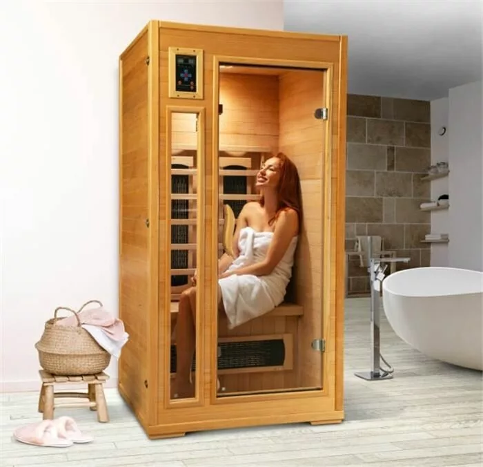 Времени для установки кабины потребуется совсем немного, двум мужчинам будет достаточно всего 35 минут, и при этом не требуется вызов специалиста или какие-либо специальные знания и навыки. Длина волны ИК-обогревателей составляет от 6 до 16 микрометров, это соответствует самым строгим требованиям ЕС. Кабина выполнена из канадского хемлока, который считается самым идеальным материалом для производства качественных инфракрасных кабин. Канадский хемлок - это твердая древесина с хорошими теплоизоляционными свойствами, имеет приятный хвойный аромат, а также выделяет эфирное масло, обладающее антибактериальными и антисептическими свойствами.