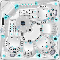 Для изделия таких размеров, в гидромассажном СПА-бассейне Ловиа Спа ZR7035 установлено довольно много форсунок - 50 штуки. Через них вода и воздух направленно воздействуют на тело, производя желаемый гидромассажный эффект. Каждый пользователь может индивидуально регулировать силу потока.